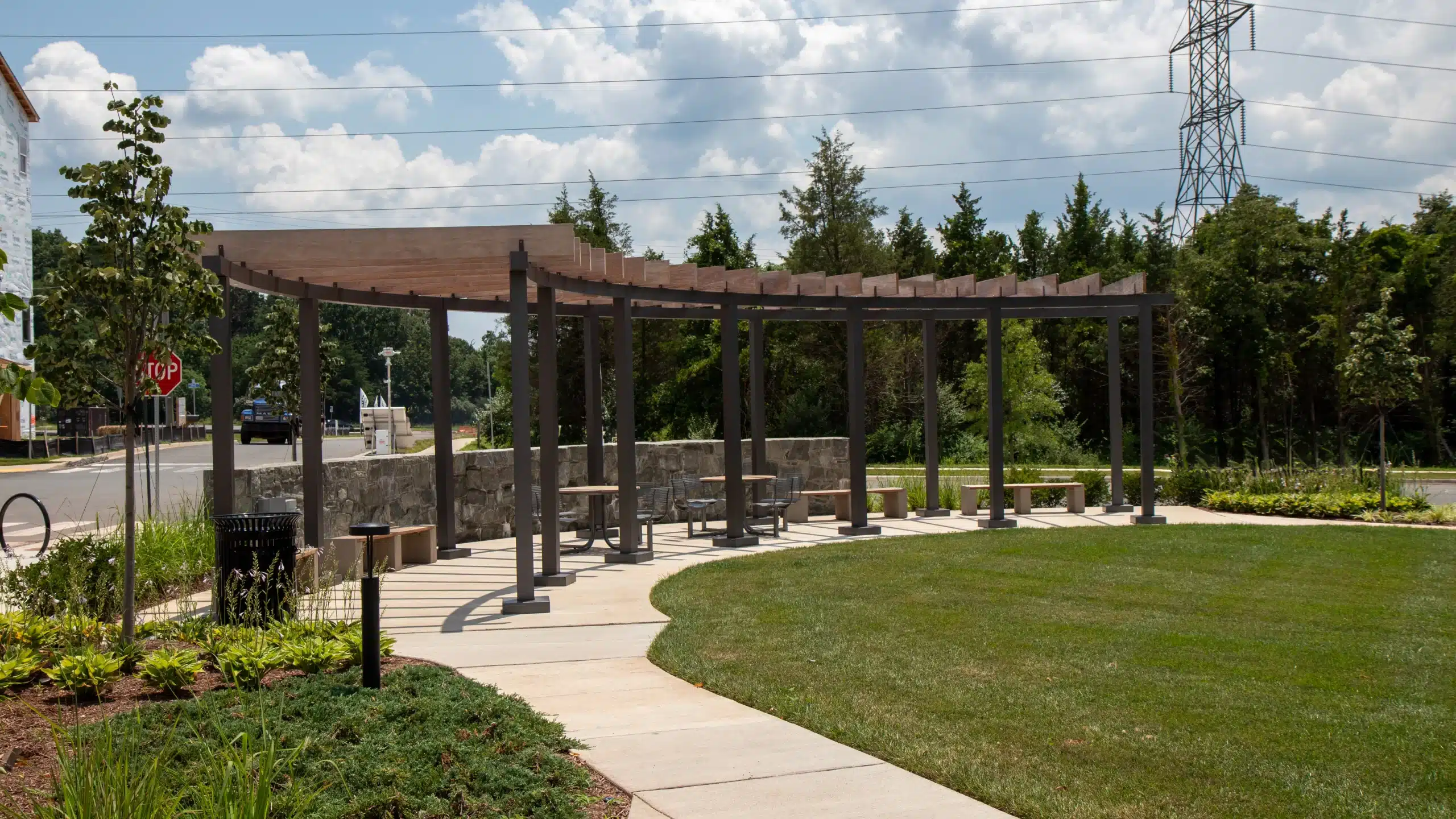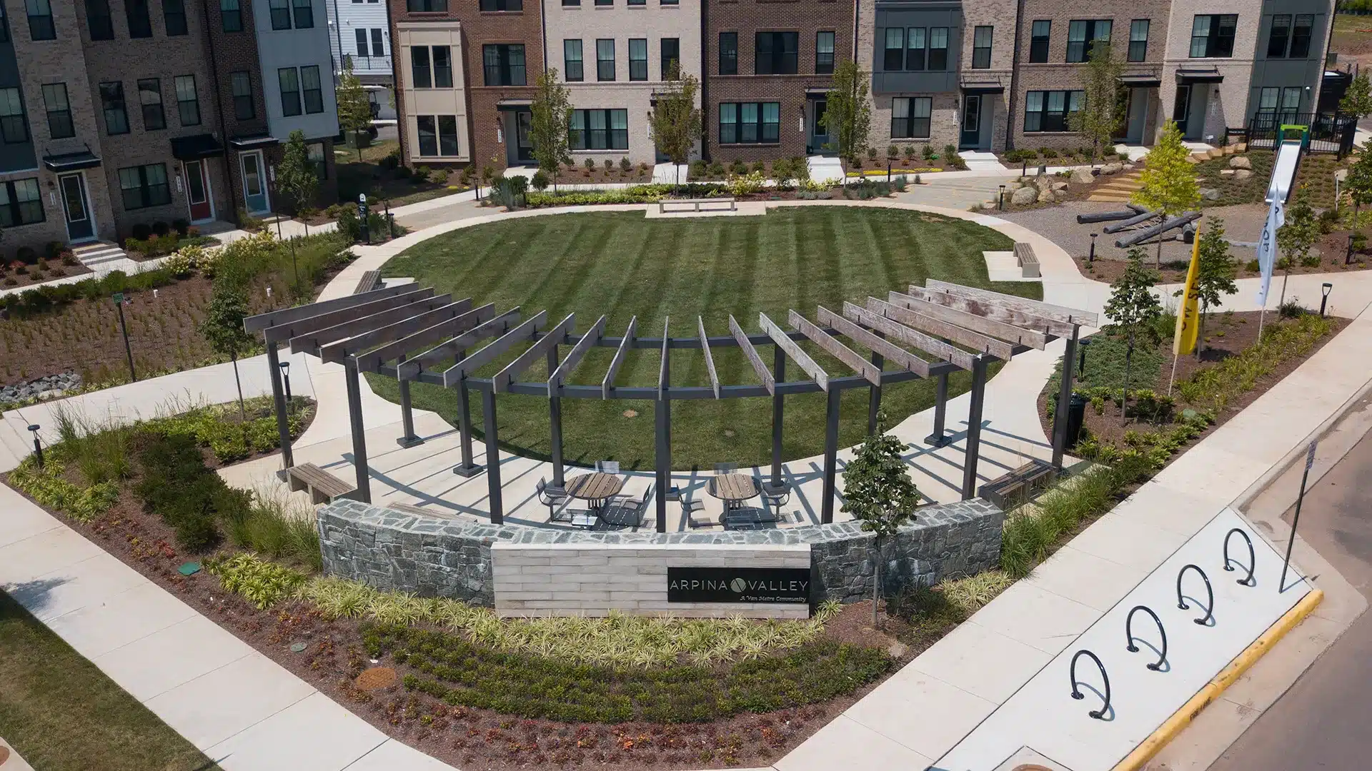 The Arpina Valley community, located in Herndon, VA, is a recently constructed community located in the heart of Herndon. Arpina Valley is minutes away from the Dulles International Airport, local shopping and dining, and the Herndon Metro Station. Featuring newly constructed townhomes designed with modern, open floor plans and stylish finishes, the Arpina Valley community needed a pergola that reflects the modern and stylish community.