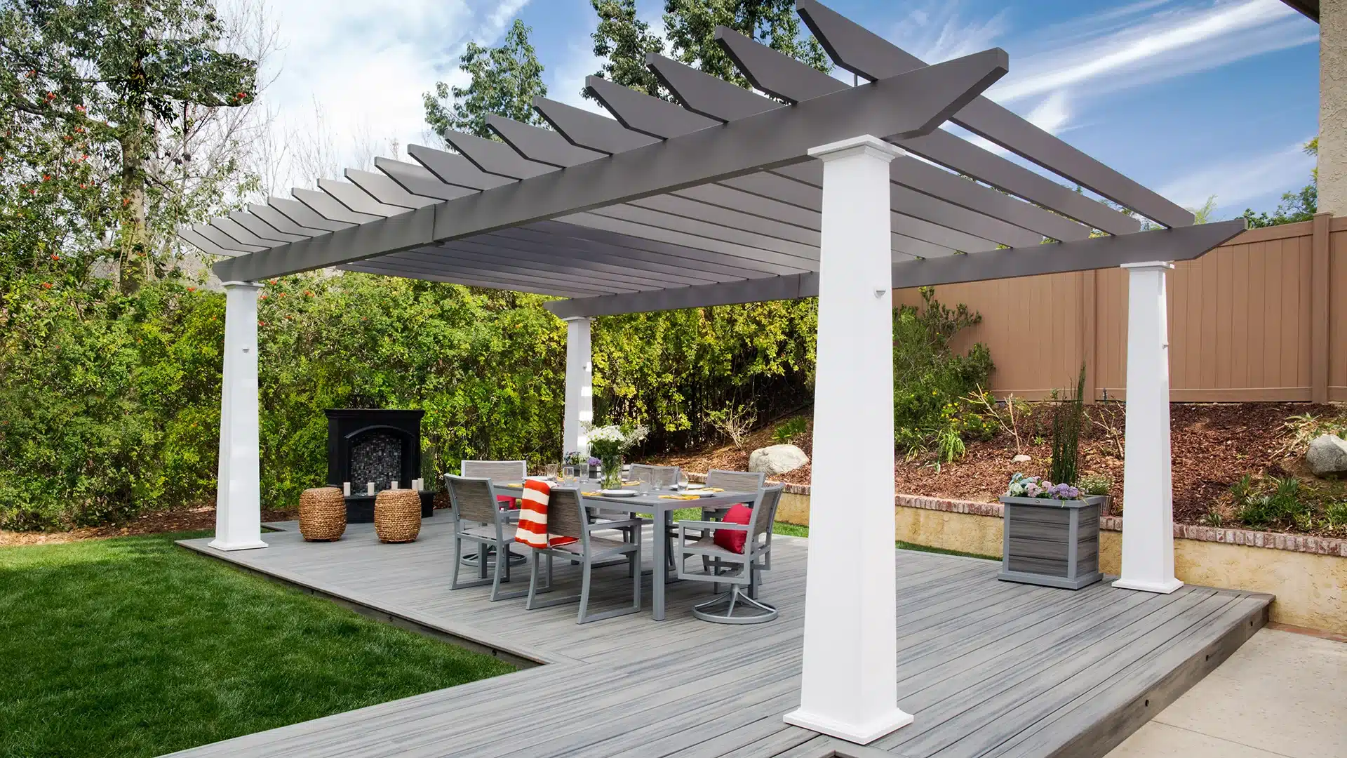 Our unique TensionRod mounting system is easy to install and provides each pergola with a secure foundation. Columns include hardware for attachment to a concrete surface. A framing mount adapter kit is also available for installation on a deck.