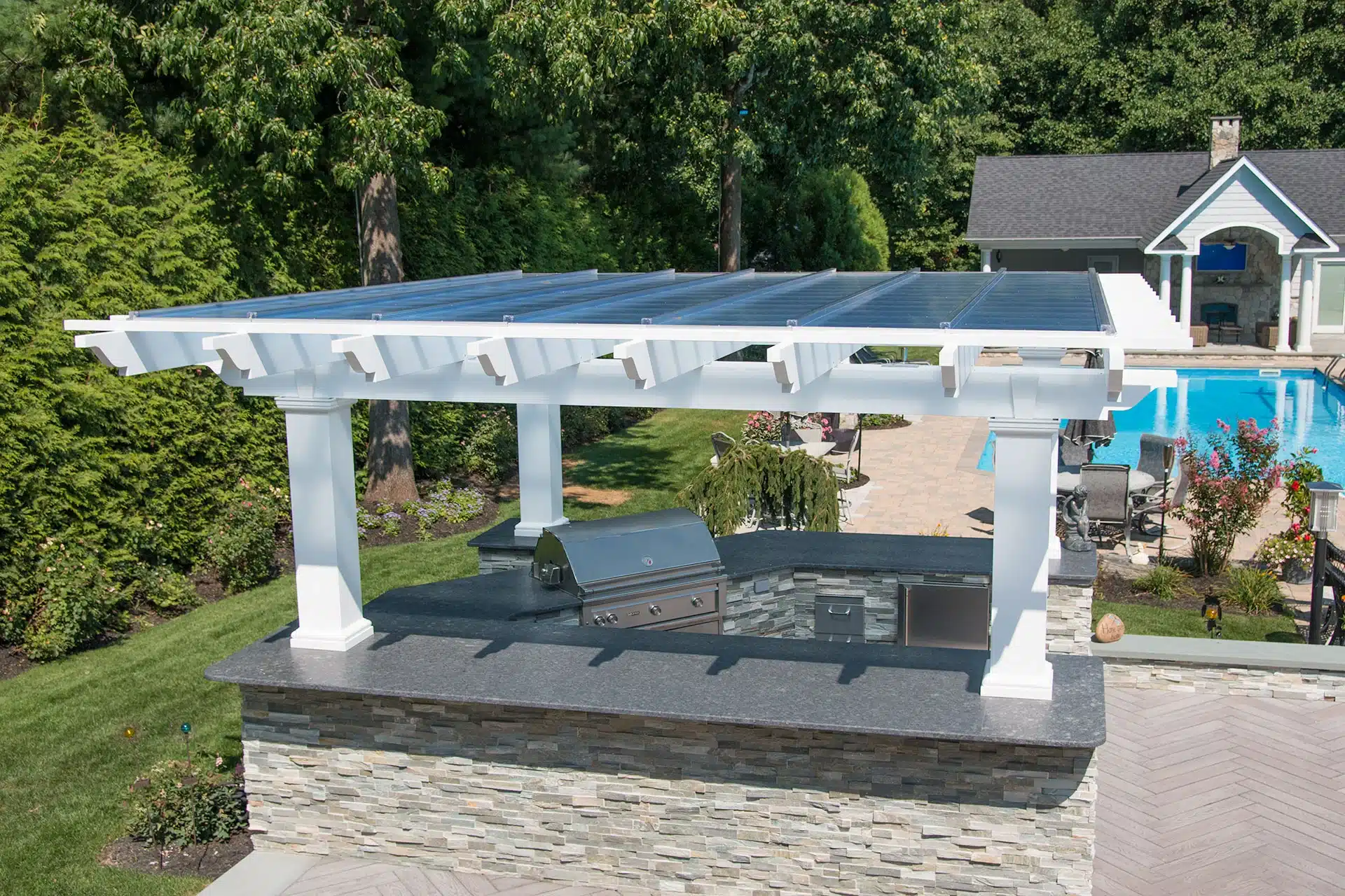 Fiberglass pergola with ShadeRight Fixed Canopy